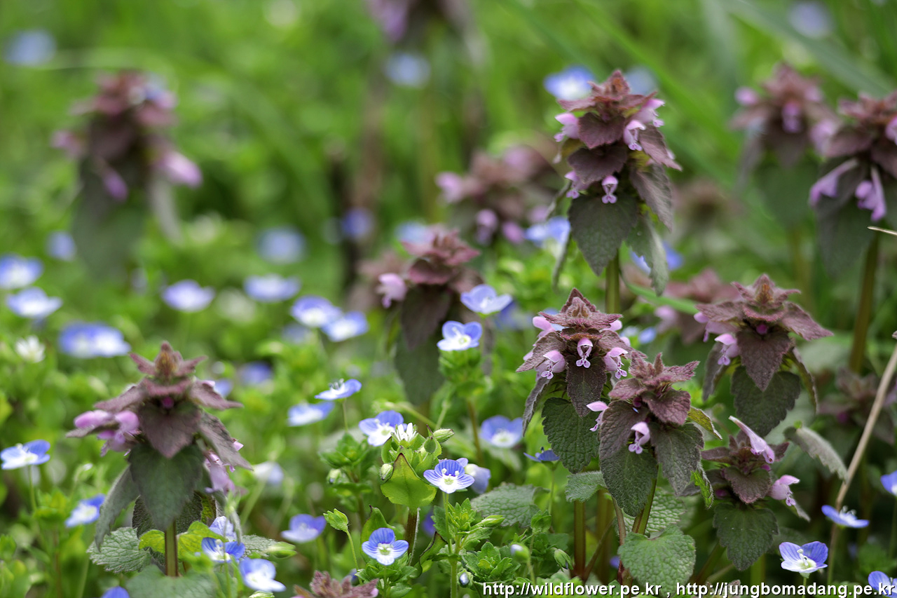 자주광대나물(붉은색) & 봄까치꽃(큰개불알풀)(파란색)