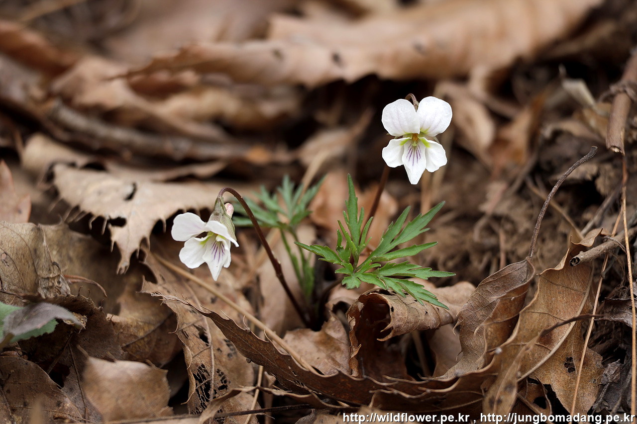 남산제비꽃 - 썩은 나무둥치 위에 자리 잡고 있네요