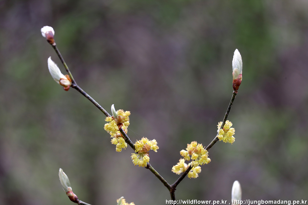생강나무 - 꽃이 지면서 잎이 나네요.