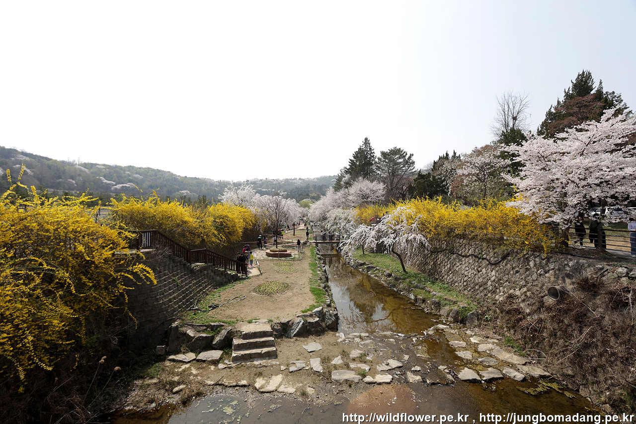 벚나무와 개나리의 조화