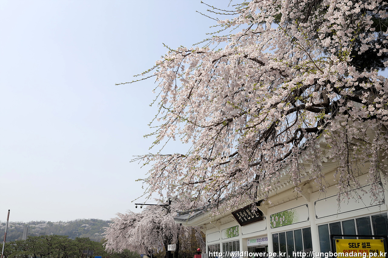 경찰충혼탑 뒤로 벚꽃이 화사 합니다.