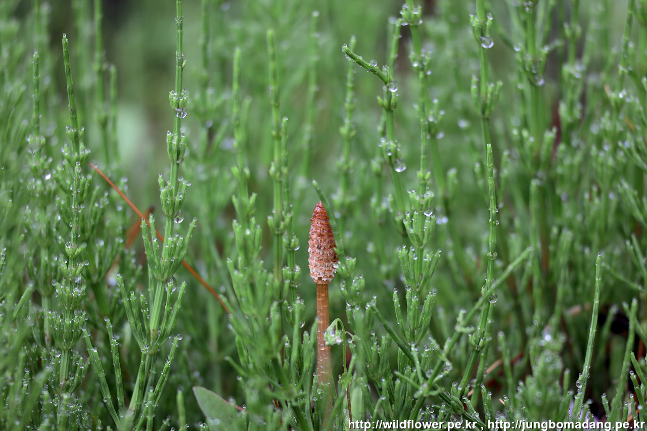 쇠뜨기와 주변에 영양줄기(녹색)