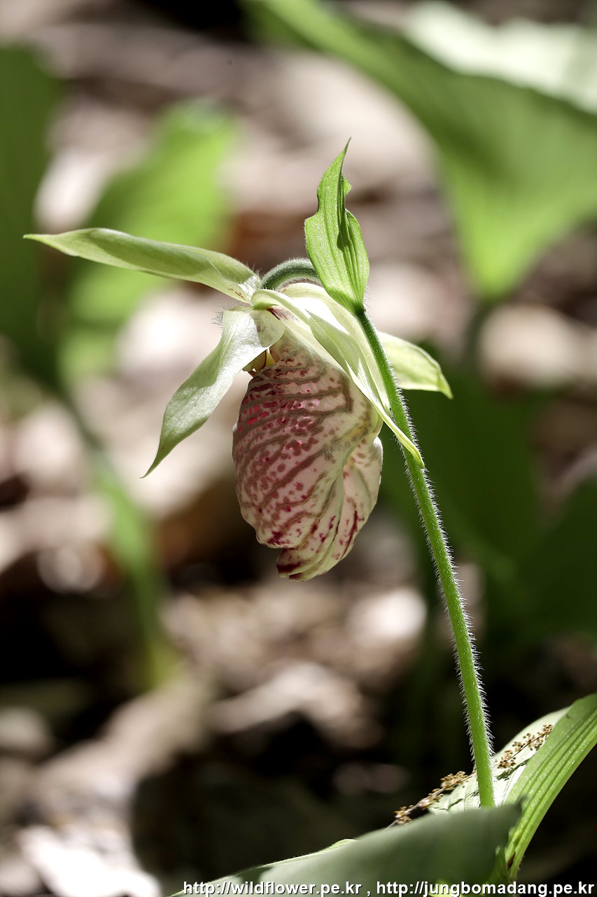 광릉요강꽃 - 뒷모습을 보니 꽃대에 흰털이 장난 아니네요.