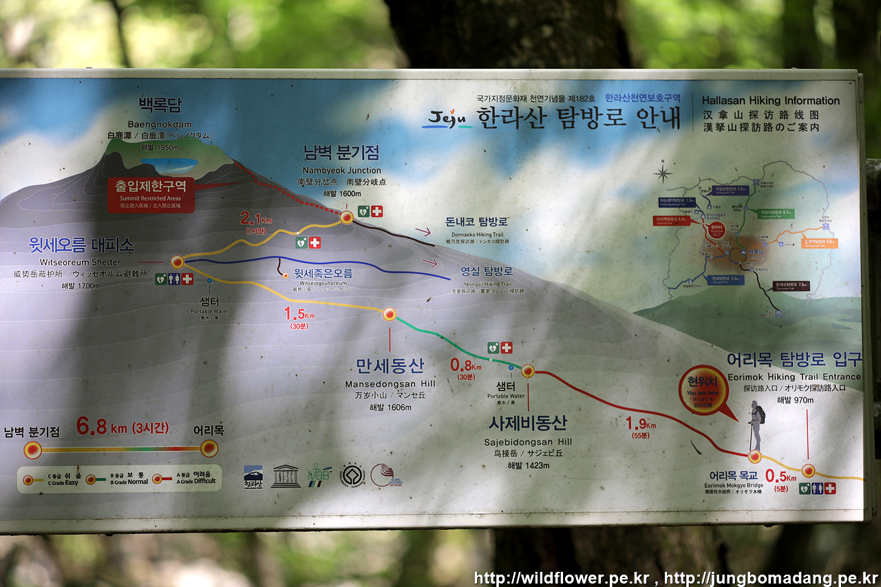 240번 버스를 이용해서 어리목입구에 도착. 오늘은 어리목-윗세오름-영실 이렇게 가볍게 올라 봅니다. 남벽 구간은 패스~