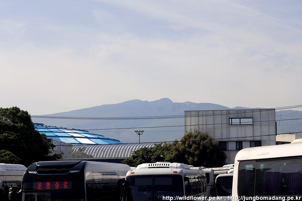 버스터미널에서 240번 버스를 기다리며 한라산 쪽을 바라 보니 구름 한 점 없네요.