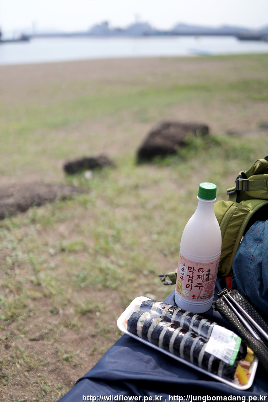 화순곶자왈 꽃구경을 마치고, 그대로 걸어서 하나로마트에서 늦은 점심으로 김밥 두줄과 막걸리를 사서 화순금모래해변으로 걸어서 왔습니다. 바다 구경 하면서 쉬엄 쉬엄...