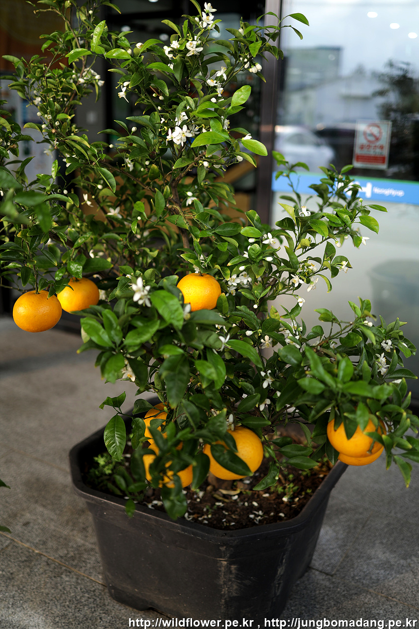 보급을 위해 남원하나로마트에 가니 신기하게 하귤나무에 꽃과 열매가 같이 있습니다.