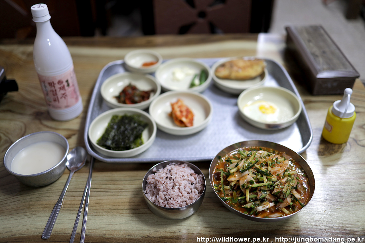 제주시버스터미널로 복귀 후 자리물회에 막걸리로 배를 채웁니다.