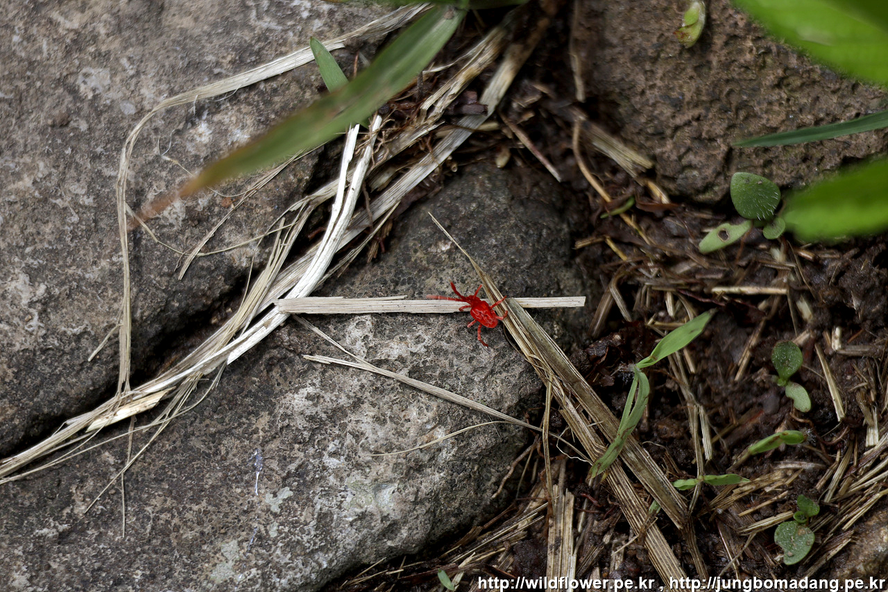 벨벳 진드기 - 크기가 2mm 정도 되는 녀석인데 땅바닥을 기어 다니네요. 사람을 물고 그러진 않는 것 같네요.