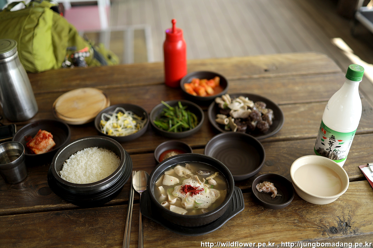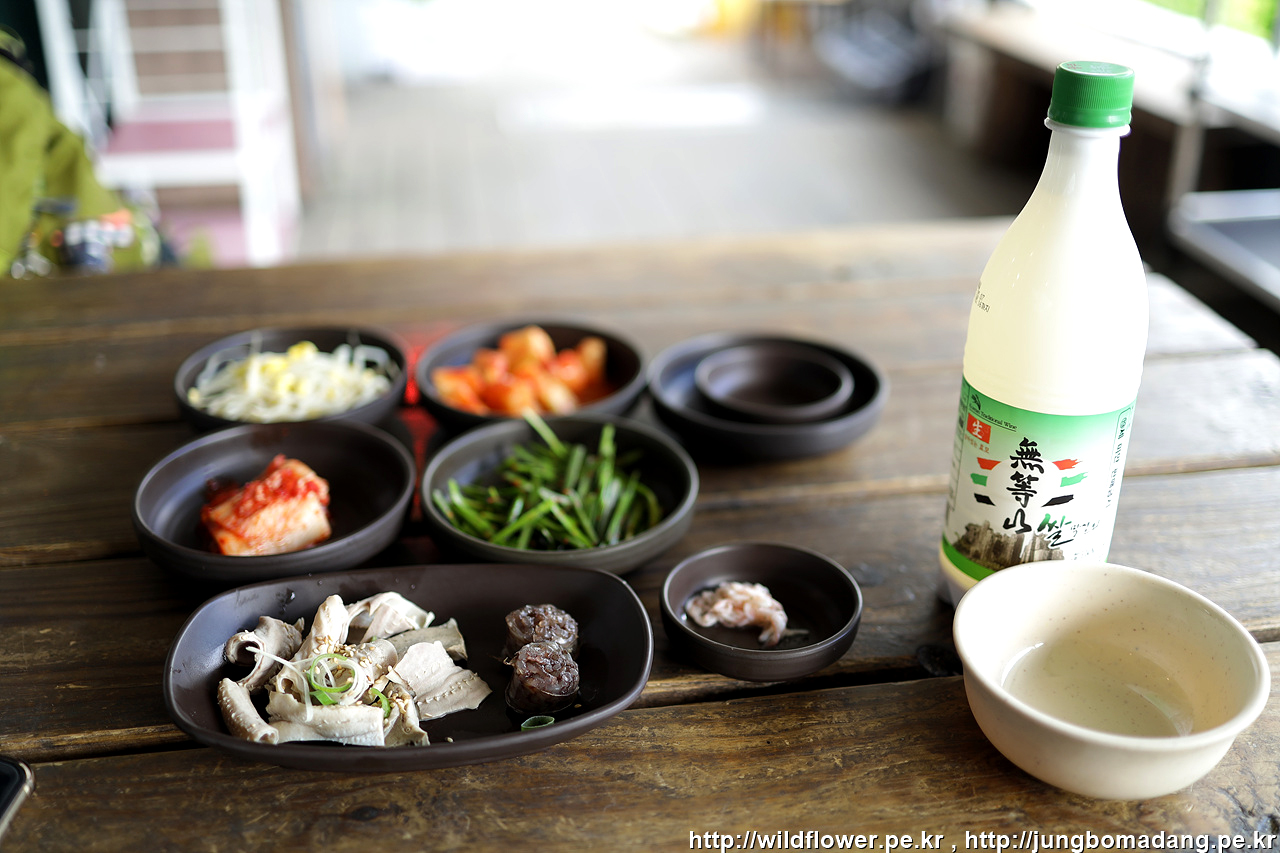 모듬국밥에 막걸리(무등산) 한병 주문합니다.