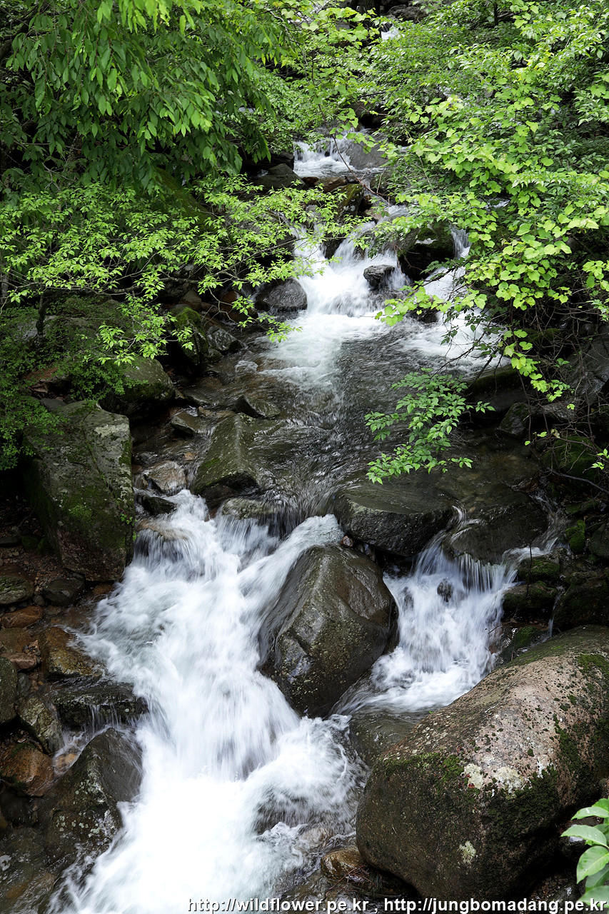 계곡의 물이 우렁차게 흐릅니다. 어제 비가 왔었나 봅니다. 다행히 지금은 맑음.