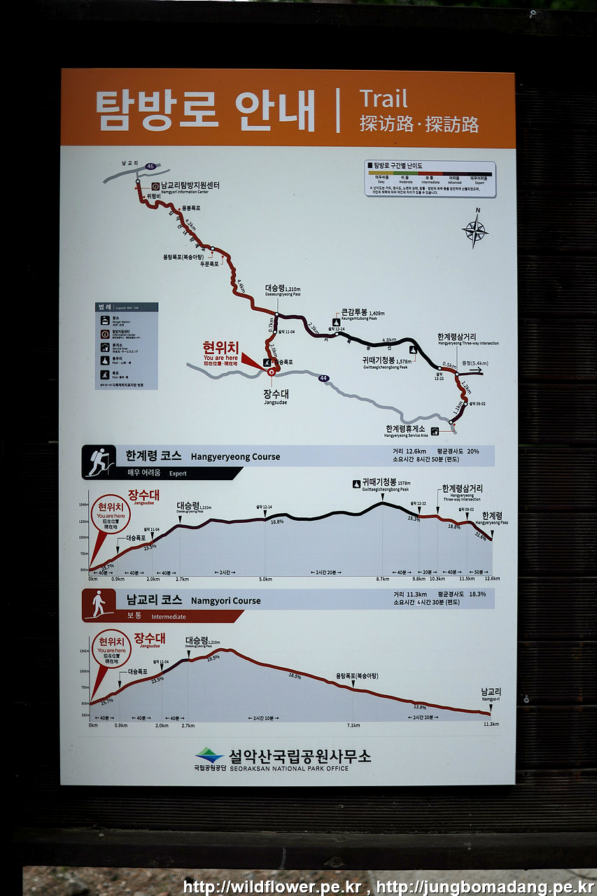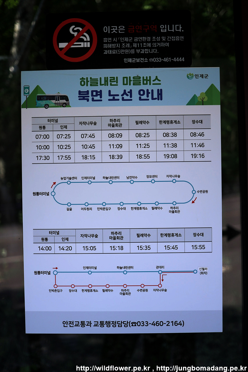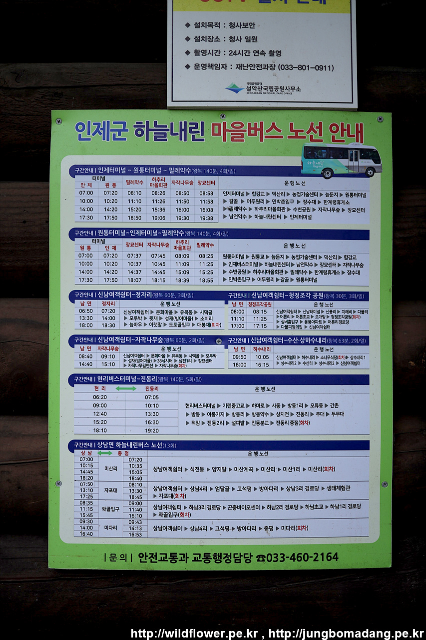되돌아갈 것을 고려하여 장수대분소에 붙어 있는 시간표를 담아 둡니다. 7시간 산행 후 장수대로 되돌아와야 하는 데 그래서 오를 때는 느긋하게 오르 지 않기로 합니다. 장수대에서 원통으로 가는 시내버스가 15시 55분에 있네요. 작년에는 15시 45분에 탔던 기억이 있는 데 바뀌나 봅니다.
