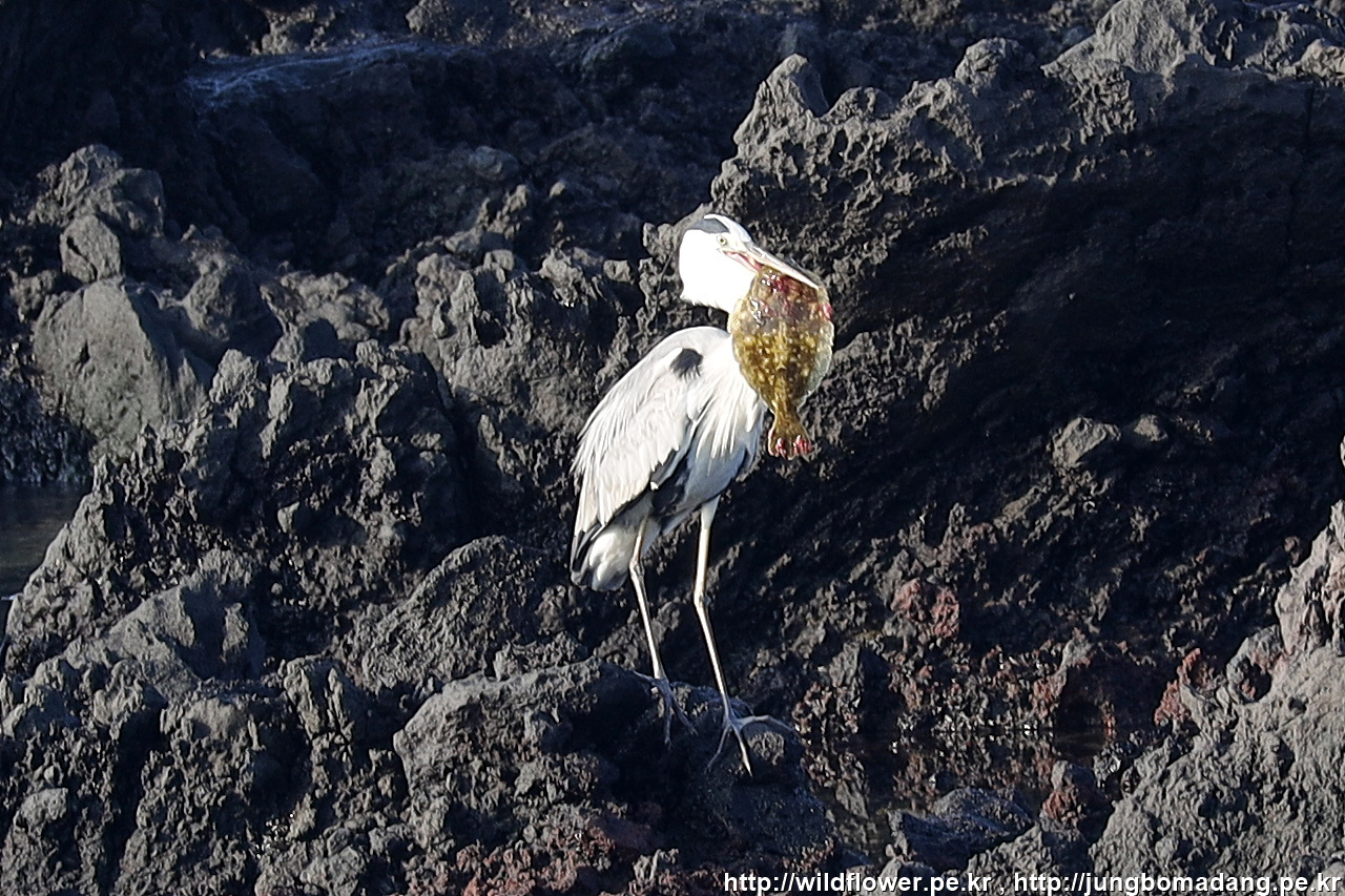 왜가리 한마리가 큼지막한 물고기를 물고 있길래 망원 렌즈로 보니