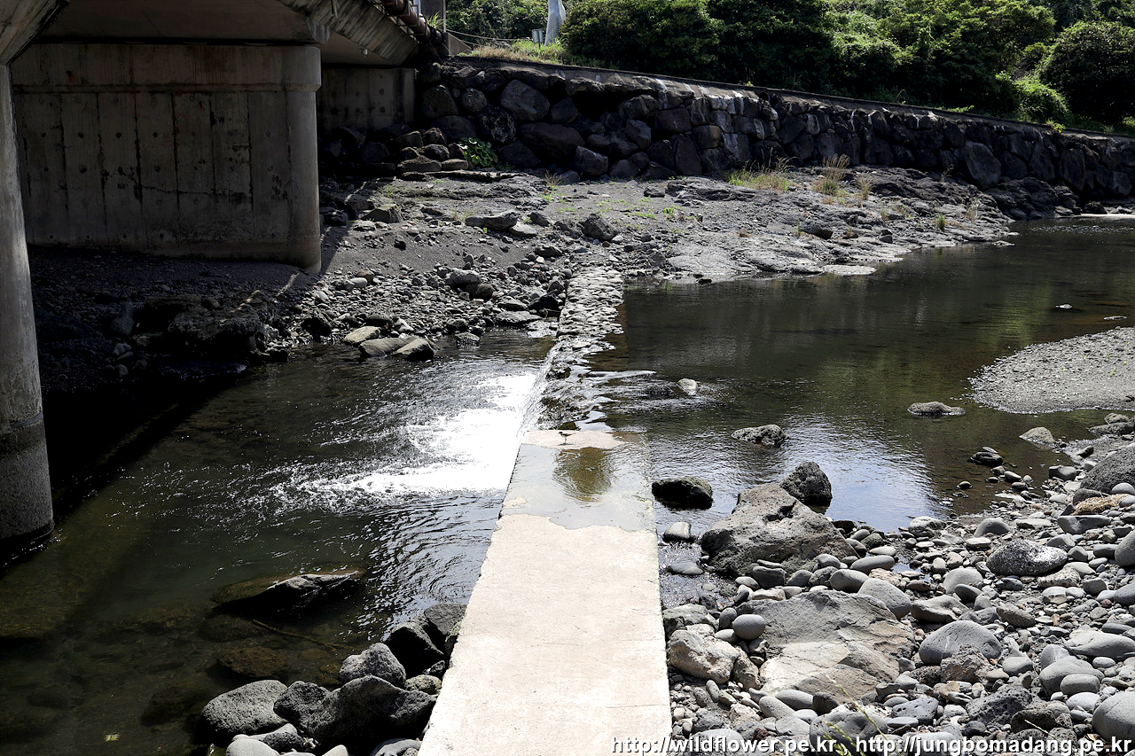 윗길이 닫혀 있어 하천쪽을 수심 낮은 곳을 건넙니다. 반바지에 샌들이라 이건 좋네요.