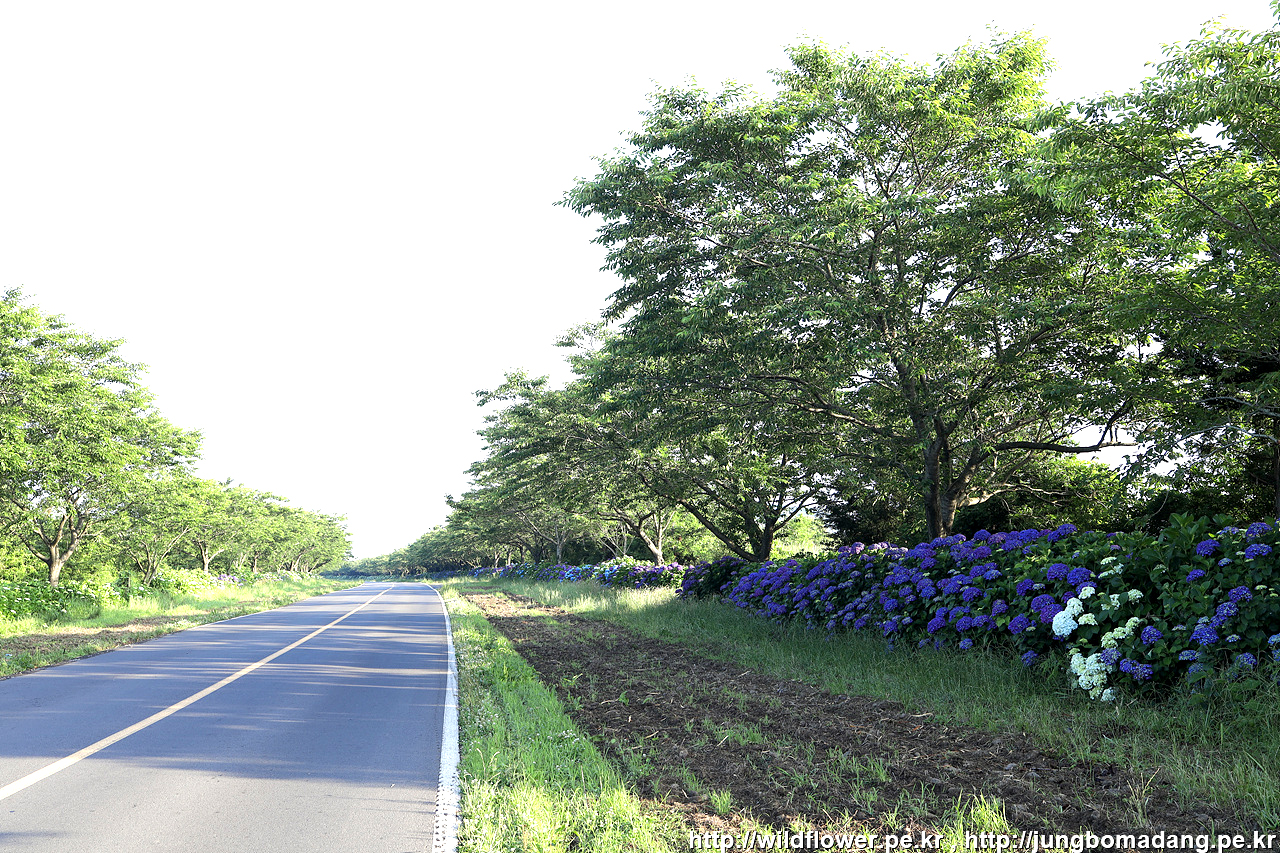 상쾌한 아침. 6시에 출발. 이른 아침인 데 은근이 도로에는 차량이 많이 지나네요. 양 옆으로 수국이 피어 있어 눈은 즐겁지만, 조심 조심 진행합니다.