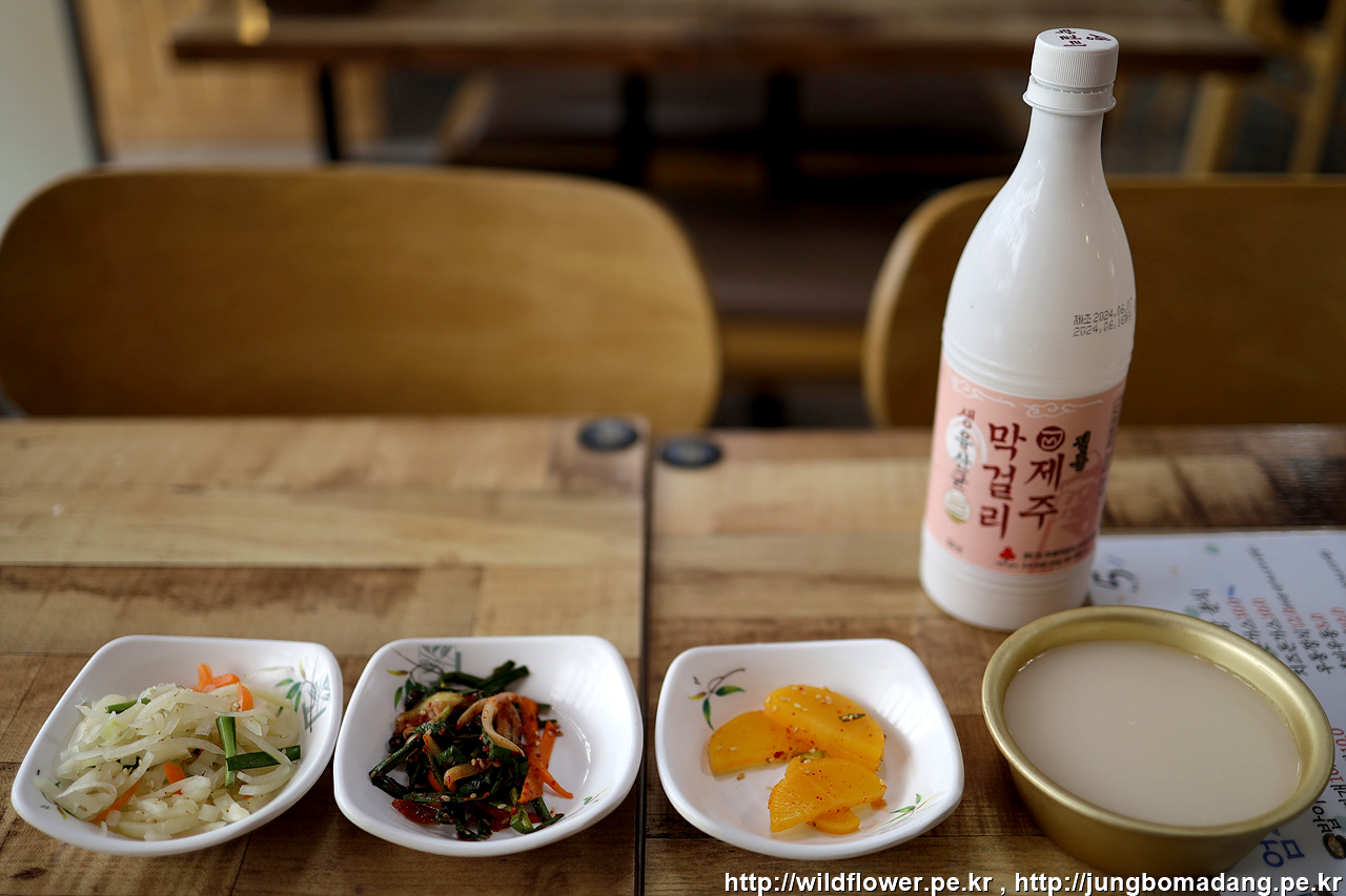 기본찬과 막걸리.