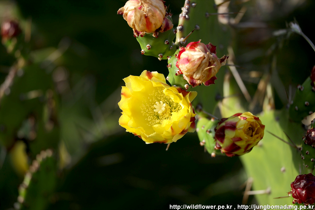 백년초 - 노란 꽃이 피었습니다. 월령리 선인장 군락지에 노란꽃이 가득 피었겠네요.