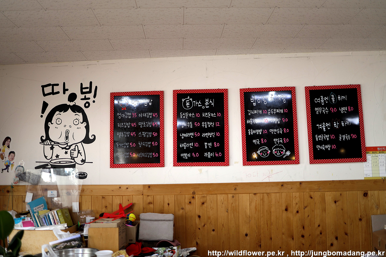 쫄면 곱배기에 엄마김밥 1줄, 막걸리 주문합니다. 쫄면 곱배기는 천원이 추가되네요.