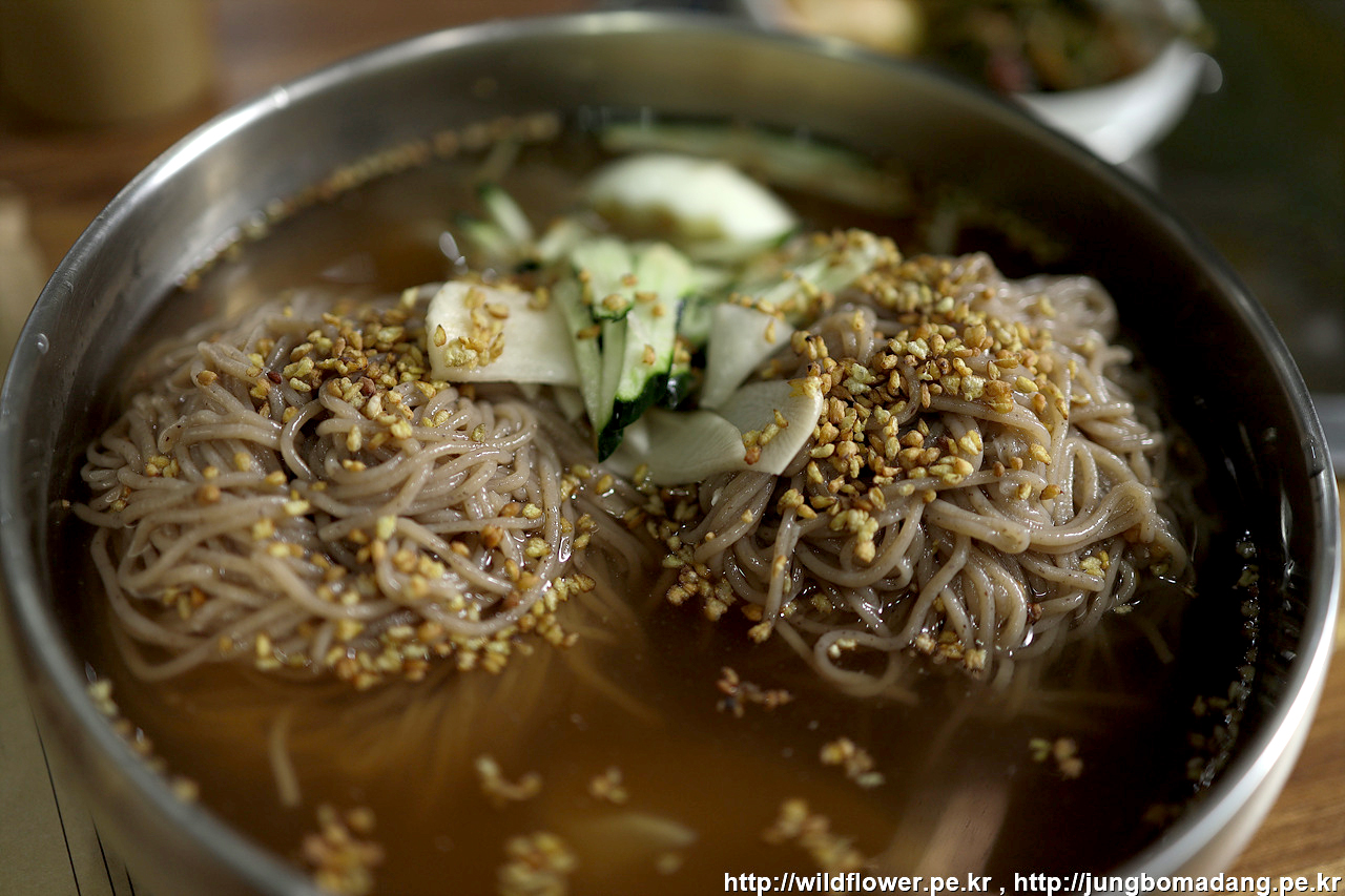 물메밀막국수. 곱배기라고 두덩어리 넣어 주네요. 시장해서 그런지 국물까지 비워도 배불지는 않네요.