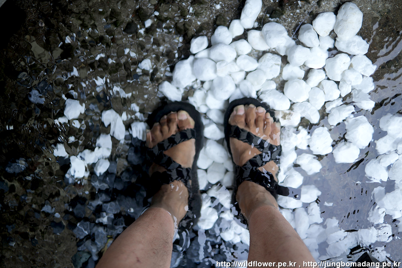 올레 14-1 코스를 걷고 나서 버스를 타고 환승하여 화순 하나로마트에서 보급 후 금모래해변에 와서 시원하게 족탕.