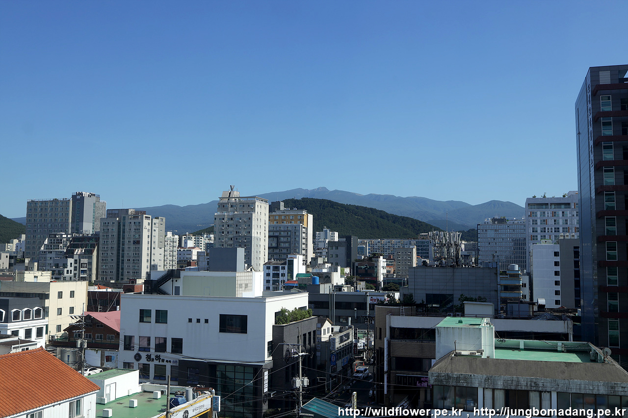 숙소에 도착합니다. 창 밖으로 한라산도 보이네요.