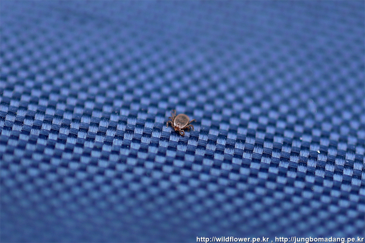 작은소참진드기(살인진드기) - 14-1코스 도착 지점인 오설록티뮤지엄에 다와 가서 잠시 쉬어 가려고 돗자리를 폈는 데, 느낌이 쎄해서 보니 이녀석이 몇마리 보이네요. 크기도 1~2mm라서 잘 보이지 않습니다. 천천히 막걸리 한잔 걸치고 있다가 빨리 마무리하고 돗자리를 잘 털고 배낭도 잘 털고 몸에 이상 없는 거 보니 물리지는 않은 듯 하여 재빨리 자리를 벗어납니다.