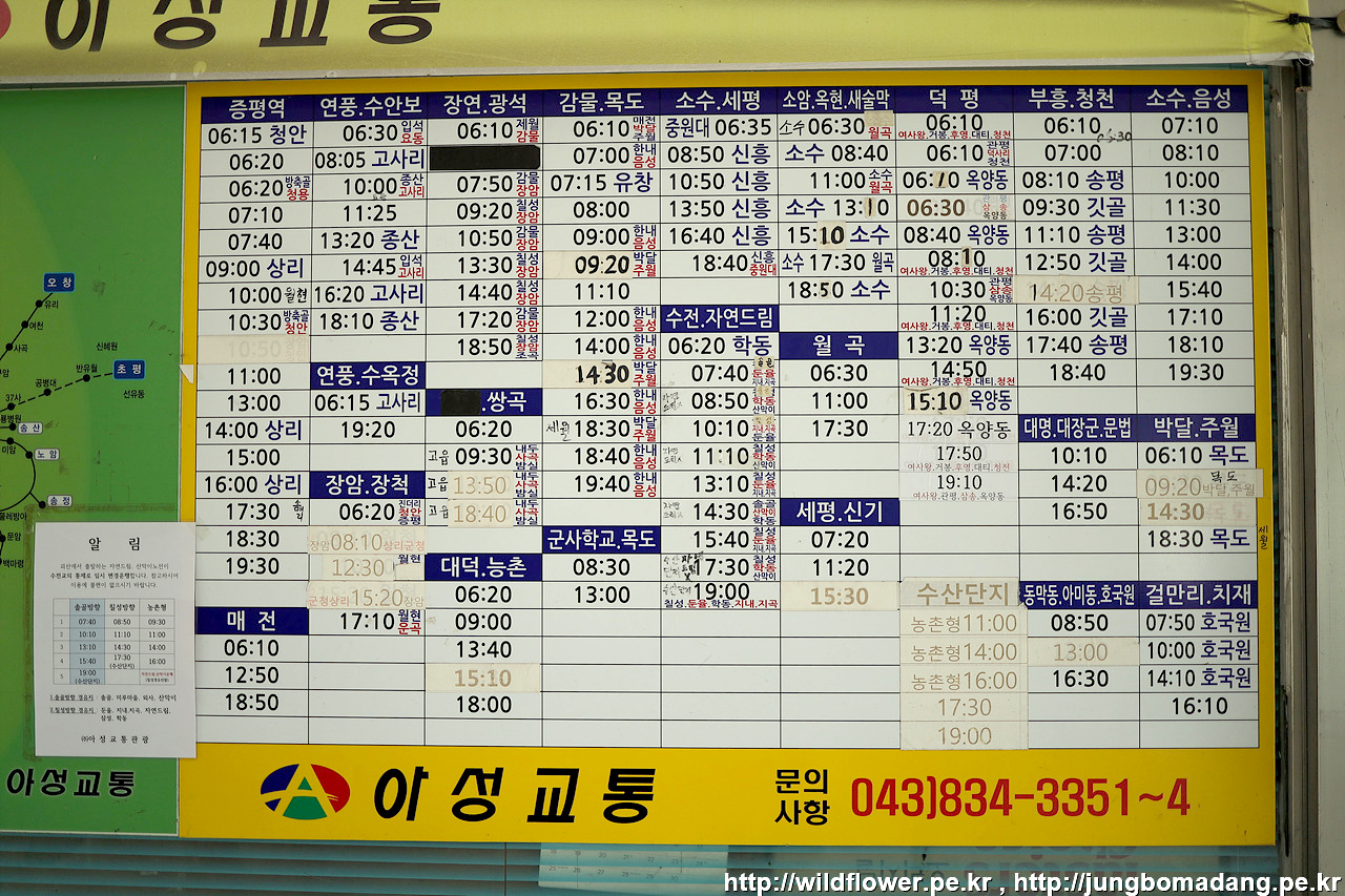 시내버스를 타고 연풍으로 향해야 하는 데, 일단 시간표를 모아 봅니다.