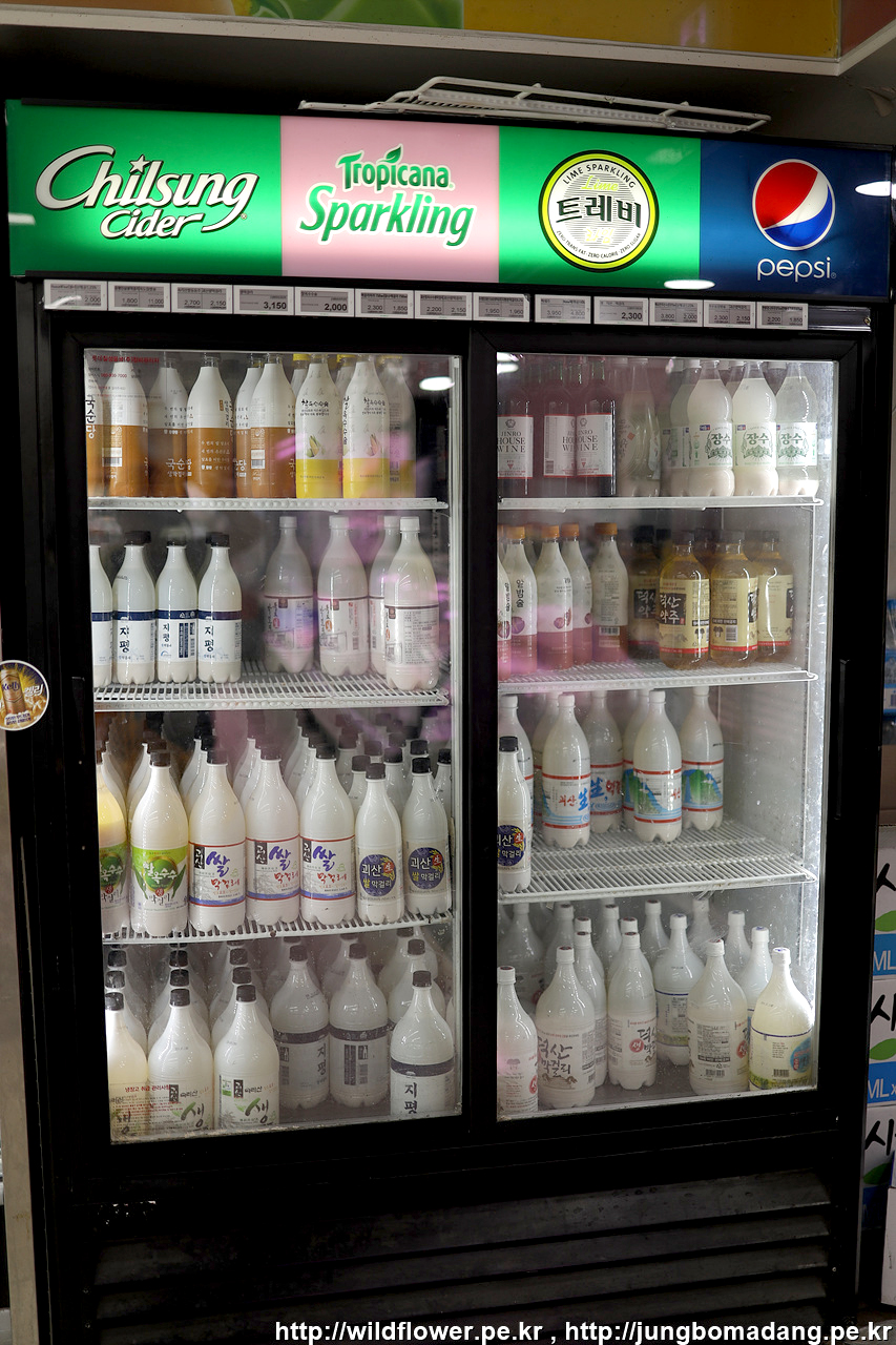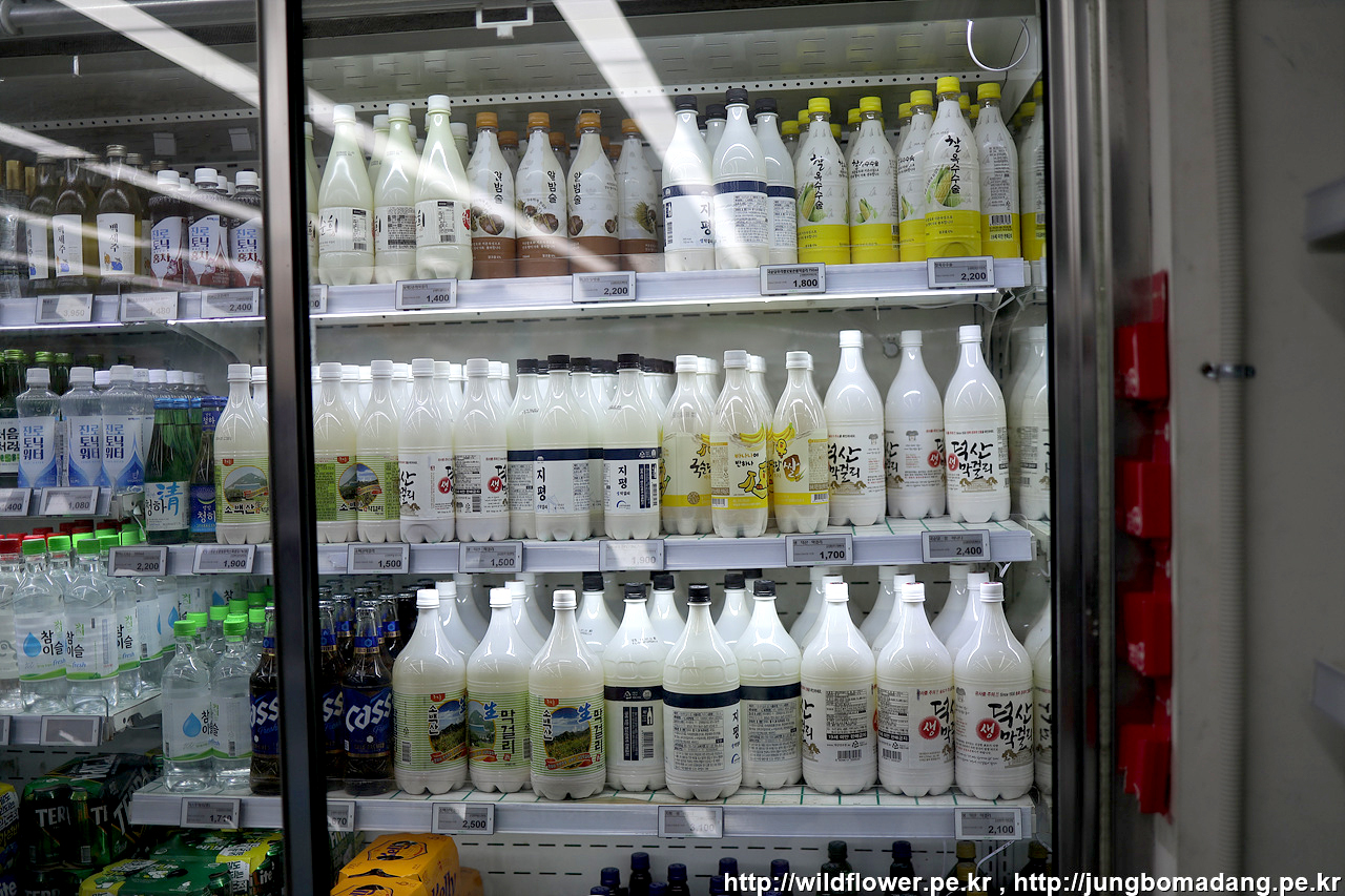1.2L 괴산 쌀막걸리 2병(병당 1500원)과 과자 몇개 구매. 버스 기다리면서 마실려고 커피도 하나 구매.