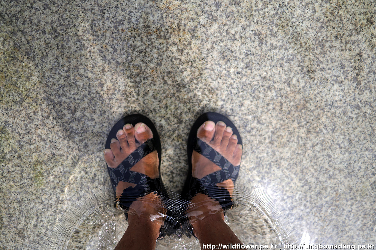 수심이 깊지 않은 곳에 발을 담궈 봅니다. 아주 시원하네요!