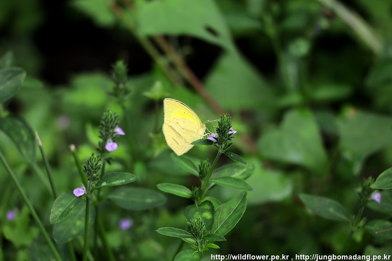 노랑나비가 쥐꼬리망초에 앉아 있습니다.