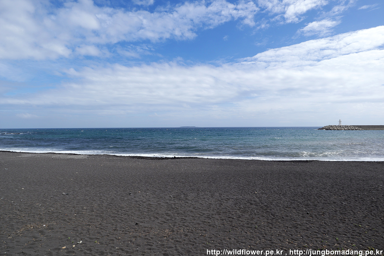쇠소깍이 있는 해변은 검은색 모래 해변이네요.
