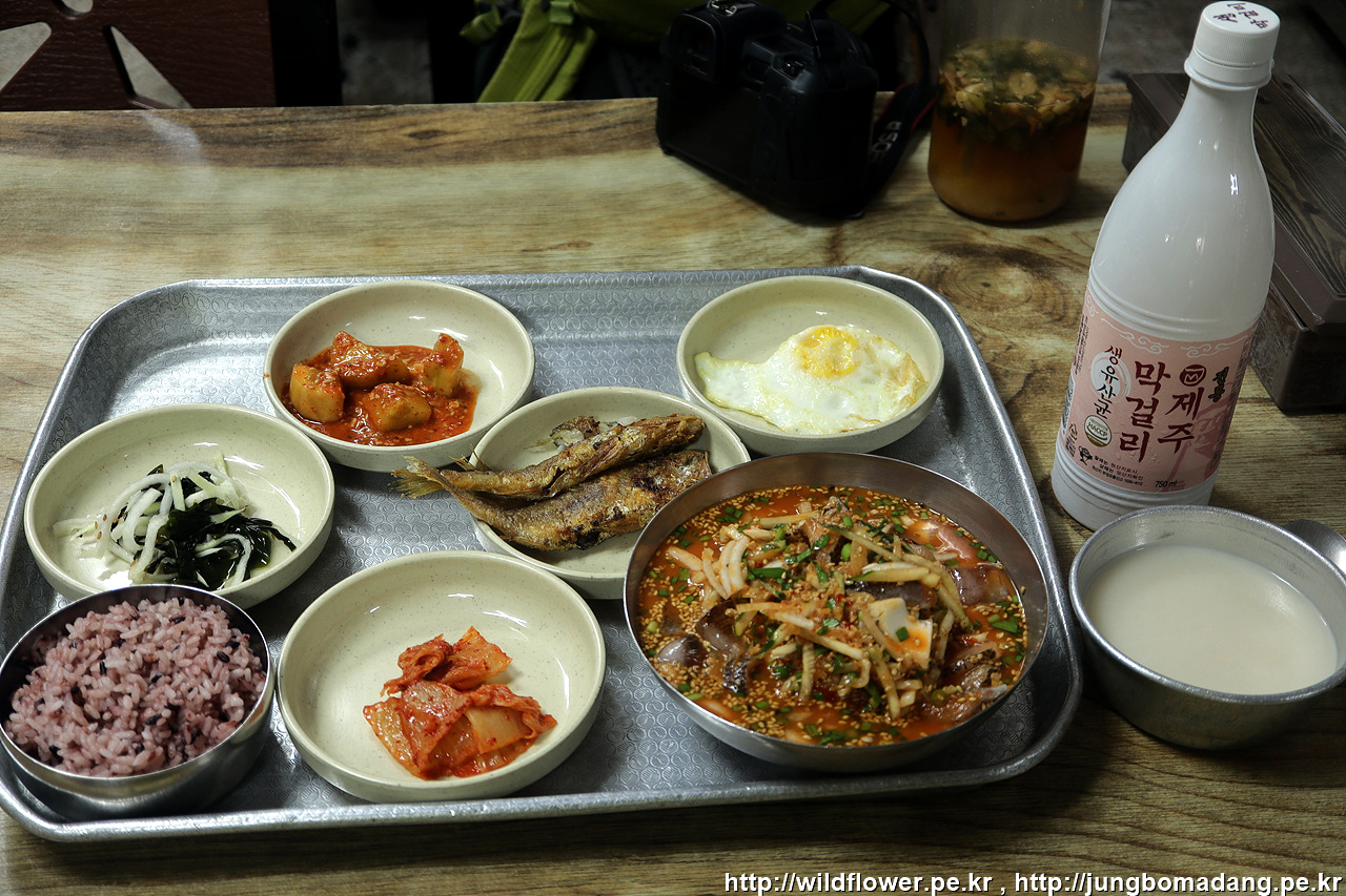 첫날 김포에서 6시 5분 비행기를 타고 제주에 일찌감치 도착하여 걸어서 아침을 해결하러 갑니다.