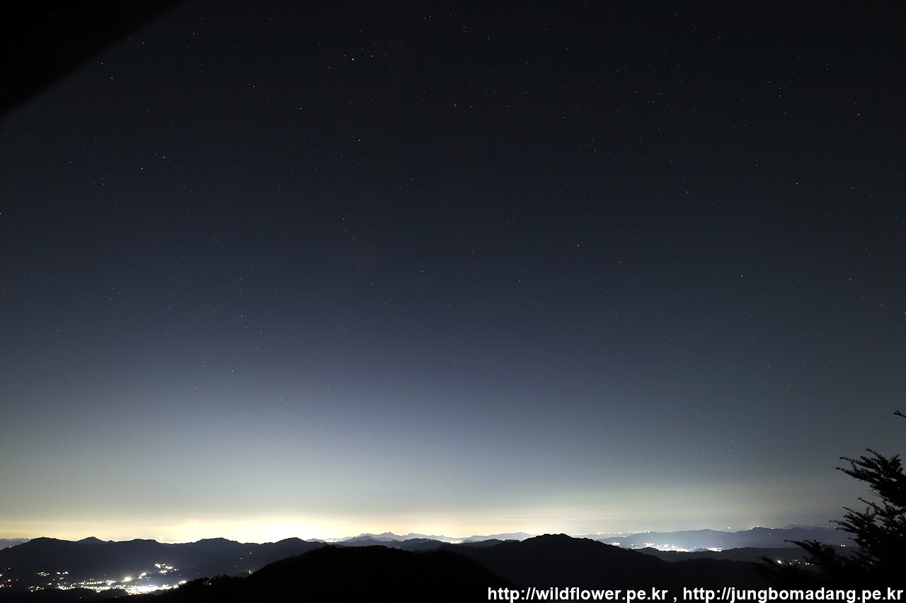 은하수 방향으로 조준해서 담았는 데, 희미하게 보일 듯 말 듯. 은하수 촬용 조건인 1.맑은날, 2.달이 가장 작은날, 3.어두운 곳을 찾아 왔는 데, 하필이면 은하수 보이는 방향으로 서울시가 자리 잡고 있어, 빛 간섭으로 인해 은하수 촬영은 부적절한 위치에서 이러고 있네요. ㅠㅜ