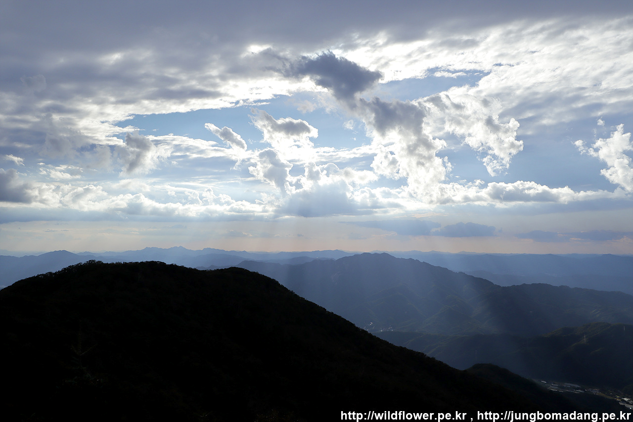 연인산 정상부의 모습이 그림자로 보입니다.
