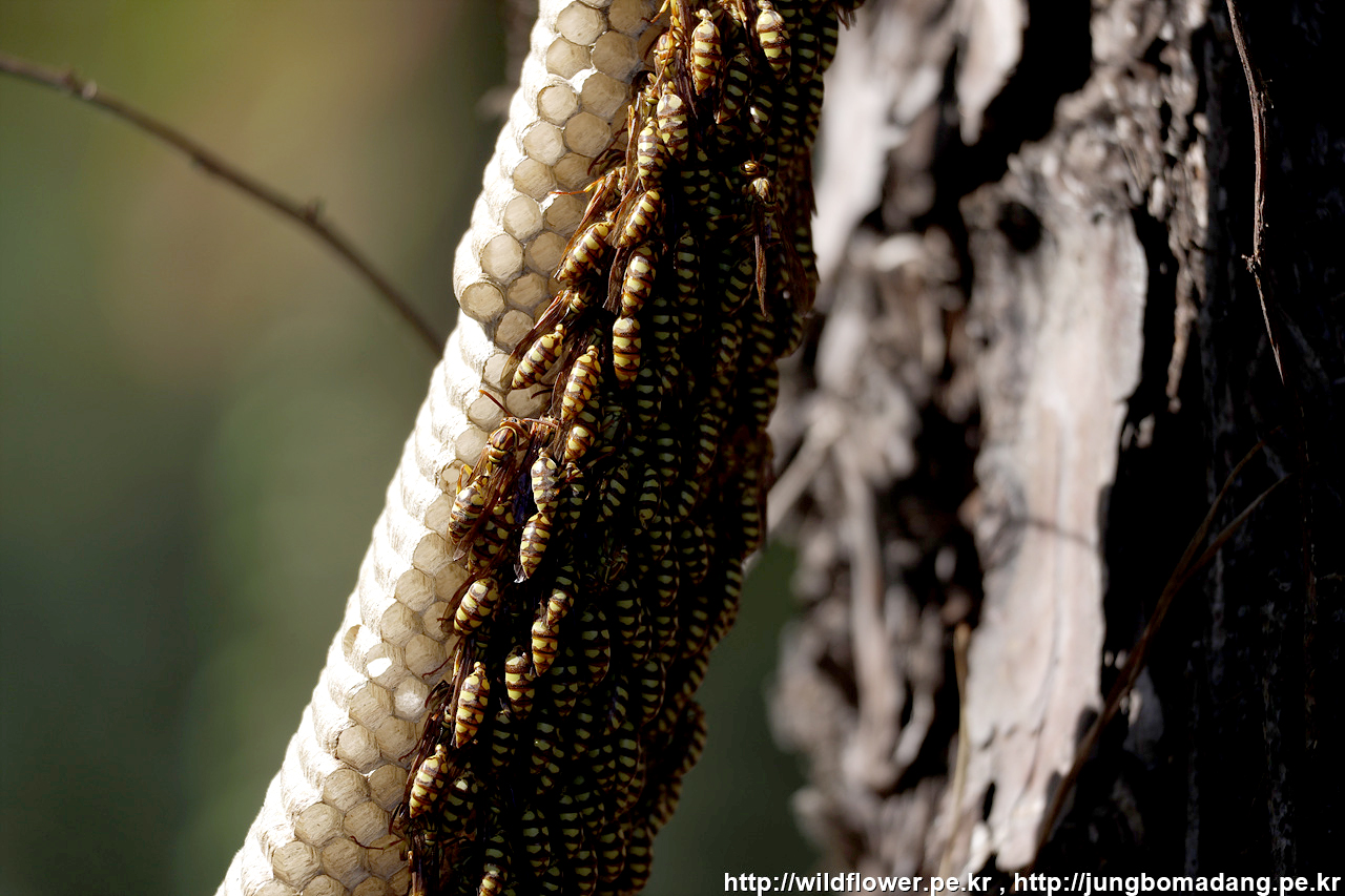 뱀허물쌍살벌 - 처음 보는 벌인데 주변을 날지는 않고 집에 붙어서 뭔가 작당 모의를 하는 모습입니다.