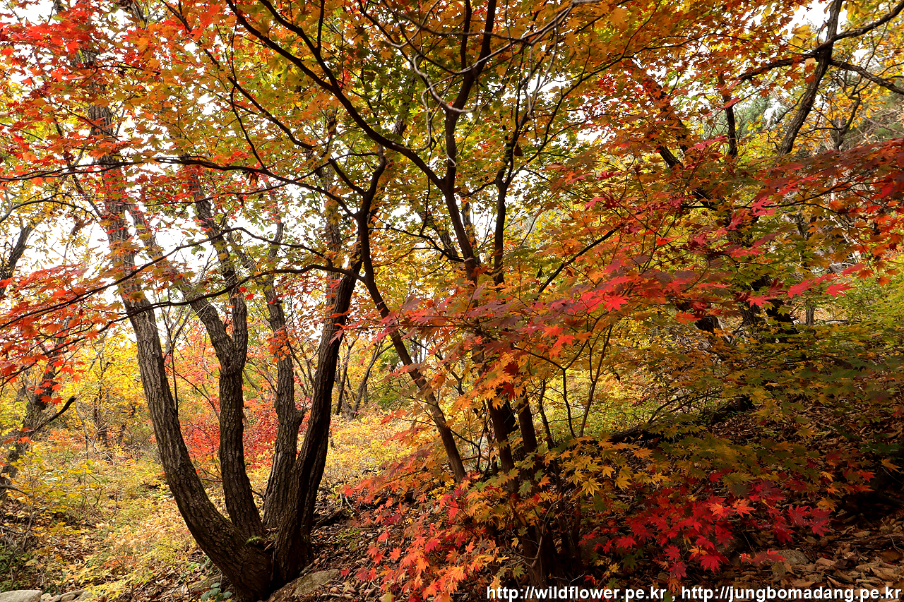 붉은 단풍이 보이기 시작합니다.