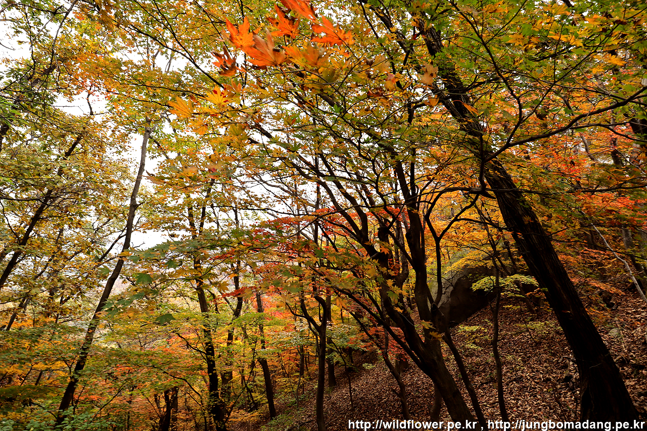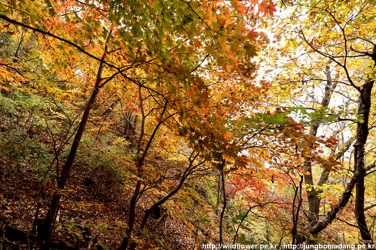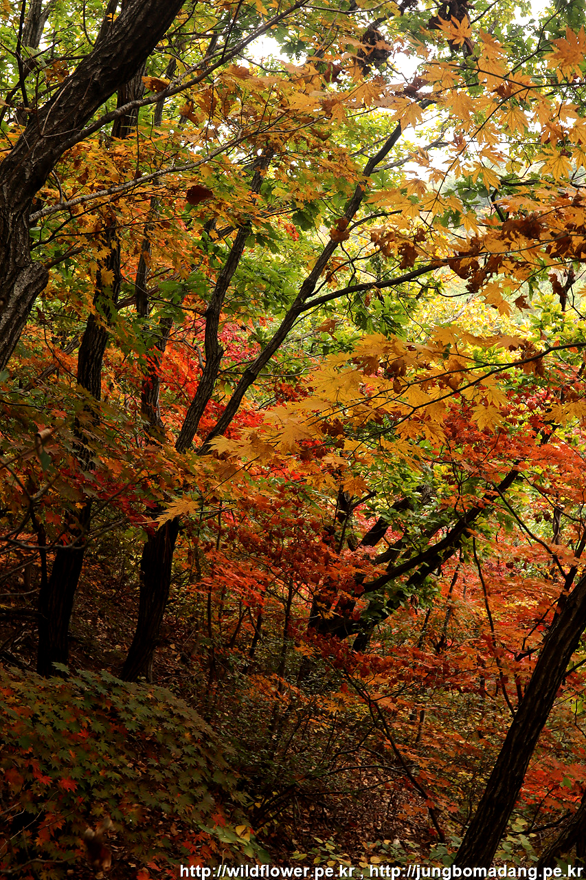 고도가 높아질수록 알록달록 단풍들이 보입니다.