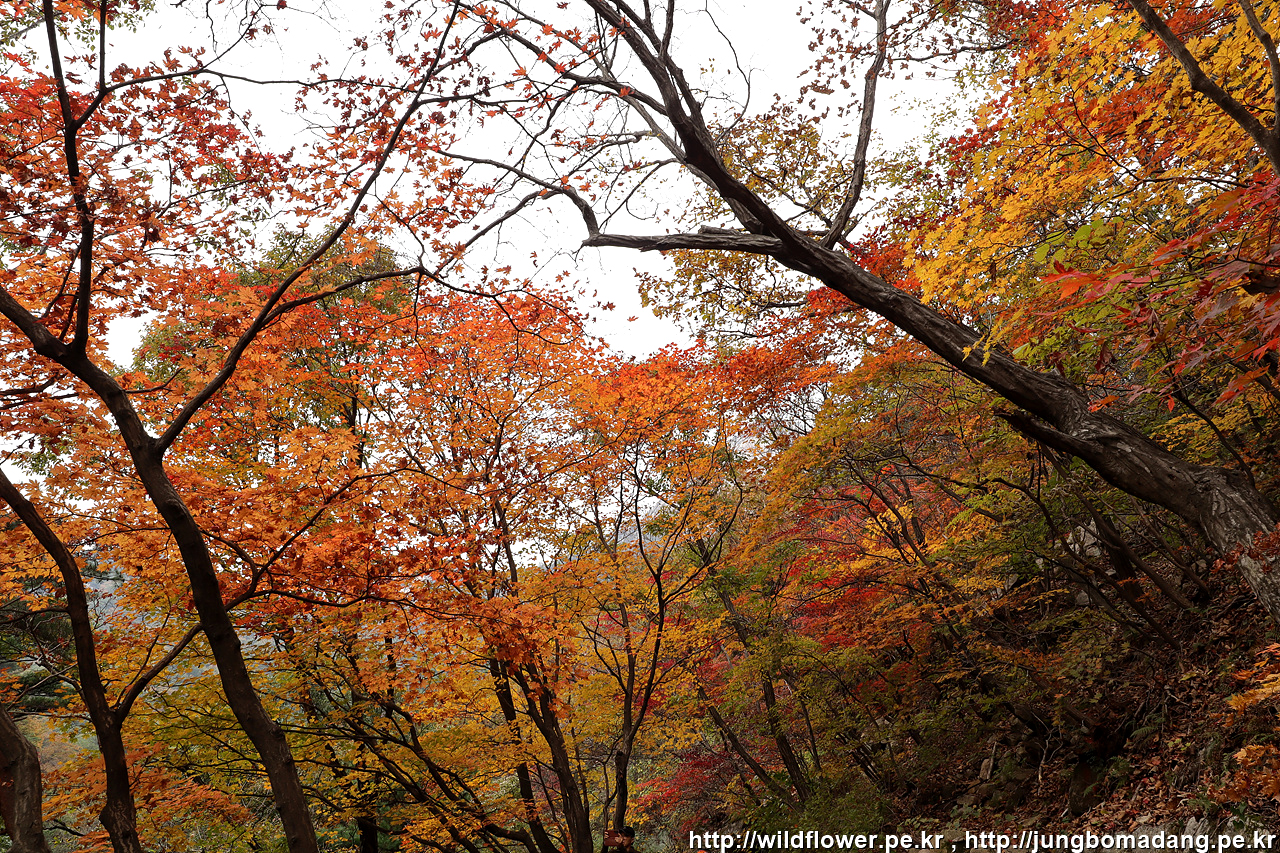 고도가 높아질수록 알록달록 단풍들이 보입니다.
