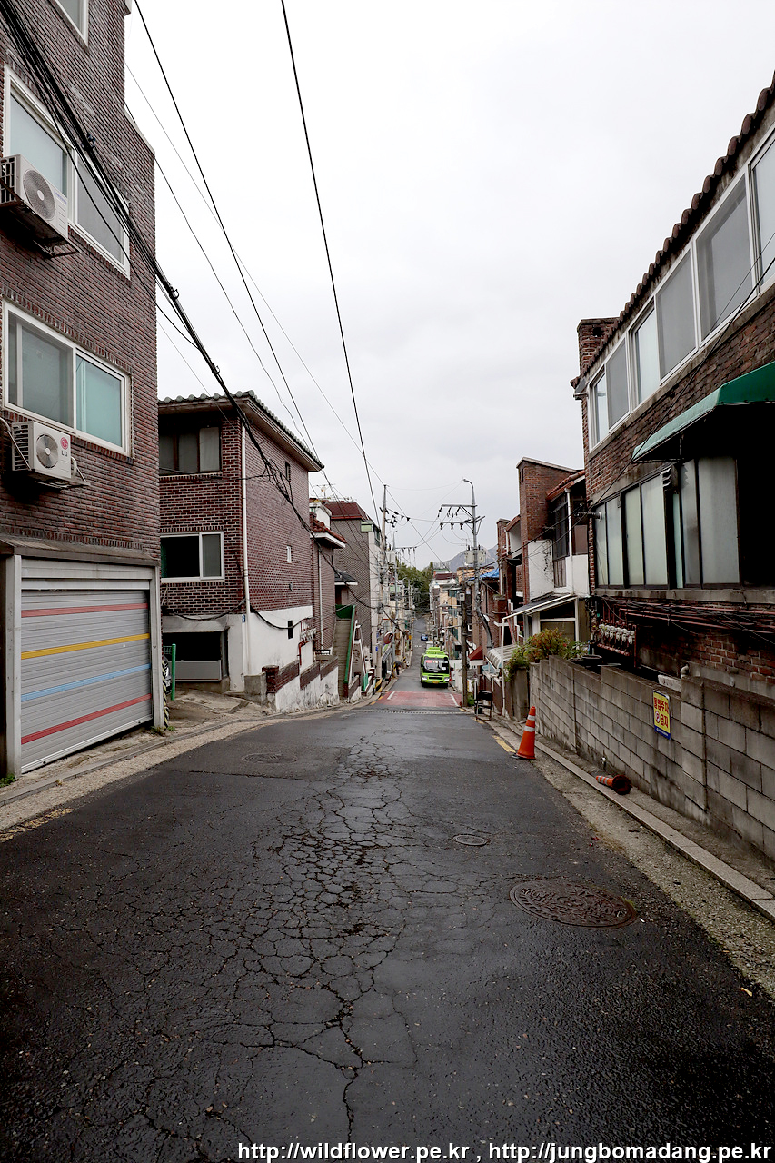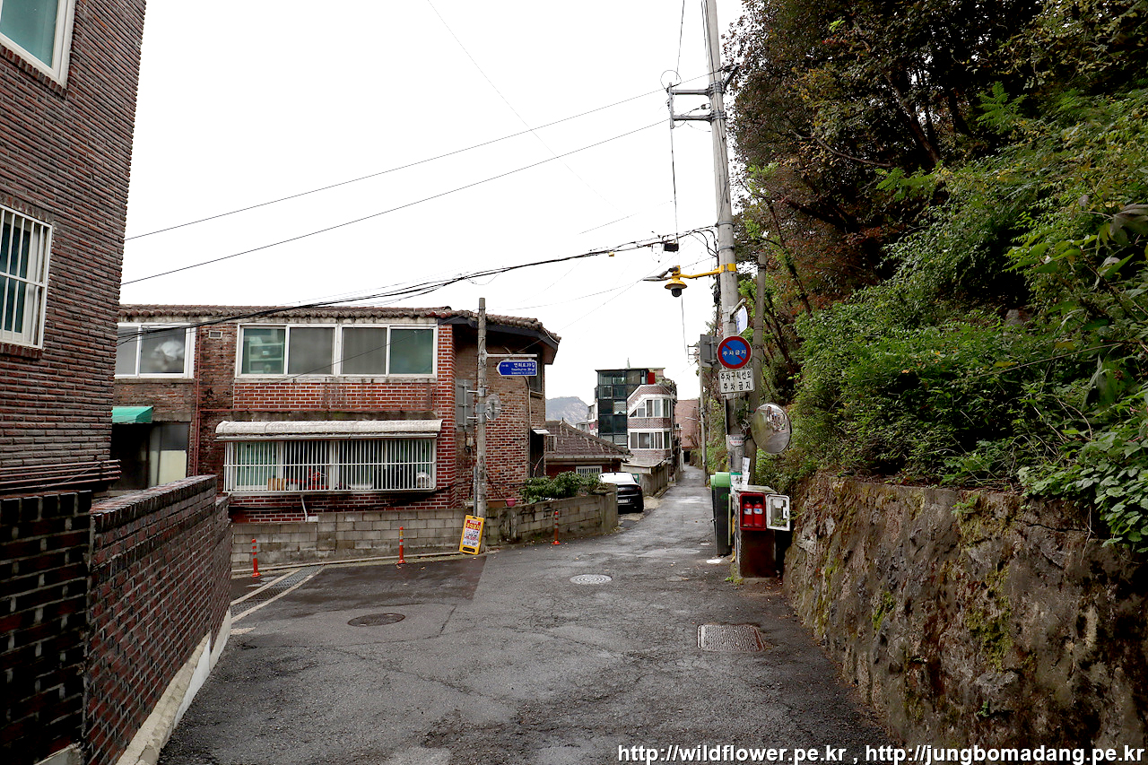 여기서 왜 그런지 모르겠지만, 하산을 해서 주택가 골목을 지나 다시 백련산에 진입하게 하였습니다. 등산로를 통해 이어서 갈 수 있는 데 궂이 그런 이유는 모르겠네요.