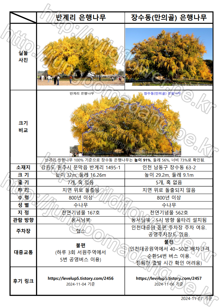 반계리 은행나무, 장수동 (만의골) 은행나무 비교 (2024-11-07)