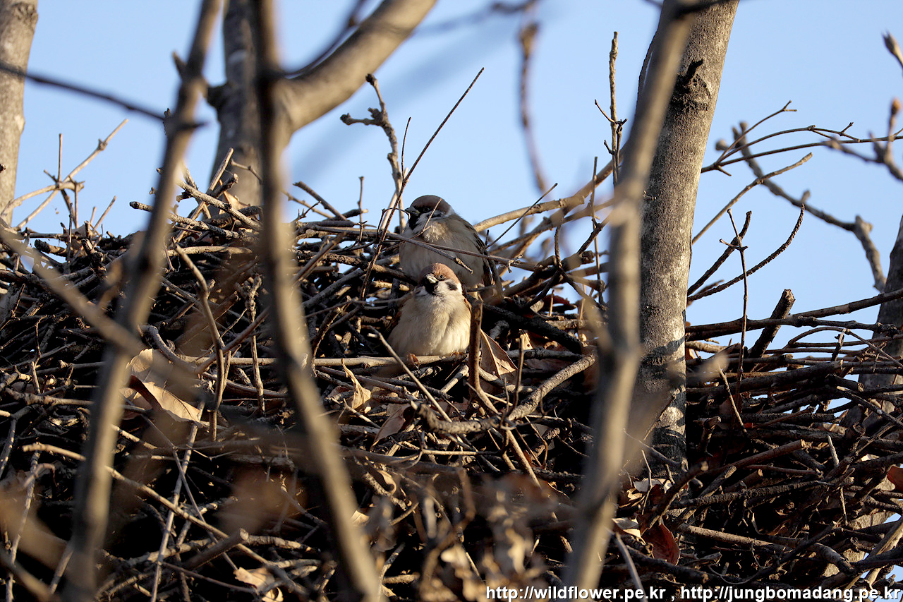참새 - 참새가 왜 까치집에서 있죠? 까치는 주변에서 울어대고...