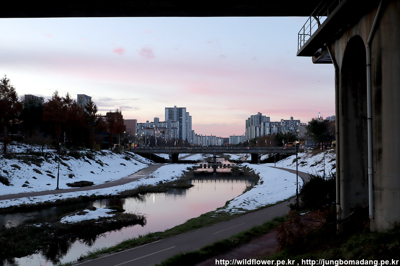 월피교에서 안산천 따라 안산호수공원까지 이동하는 길. 중간 중간 결빙 구간이 있어 조심 조심...