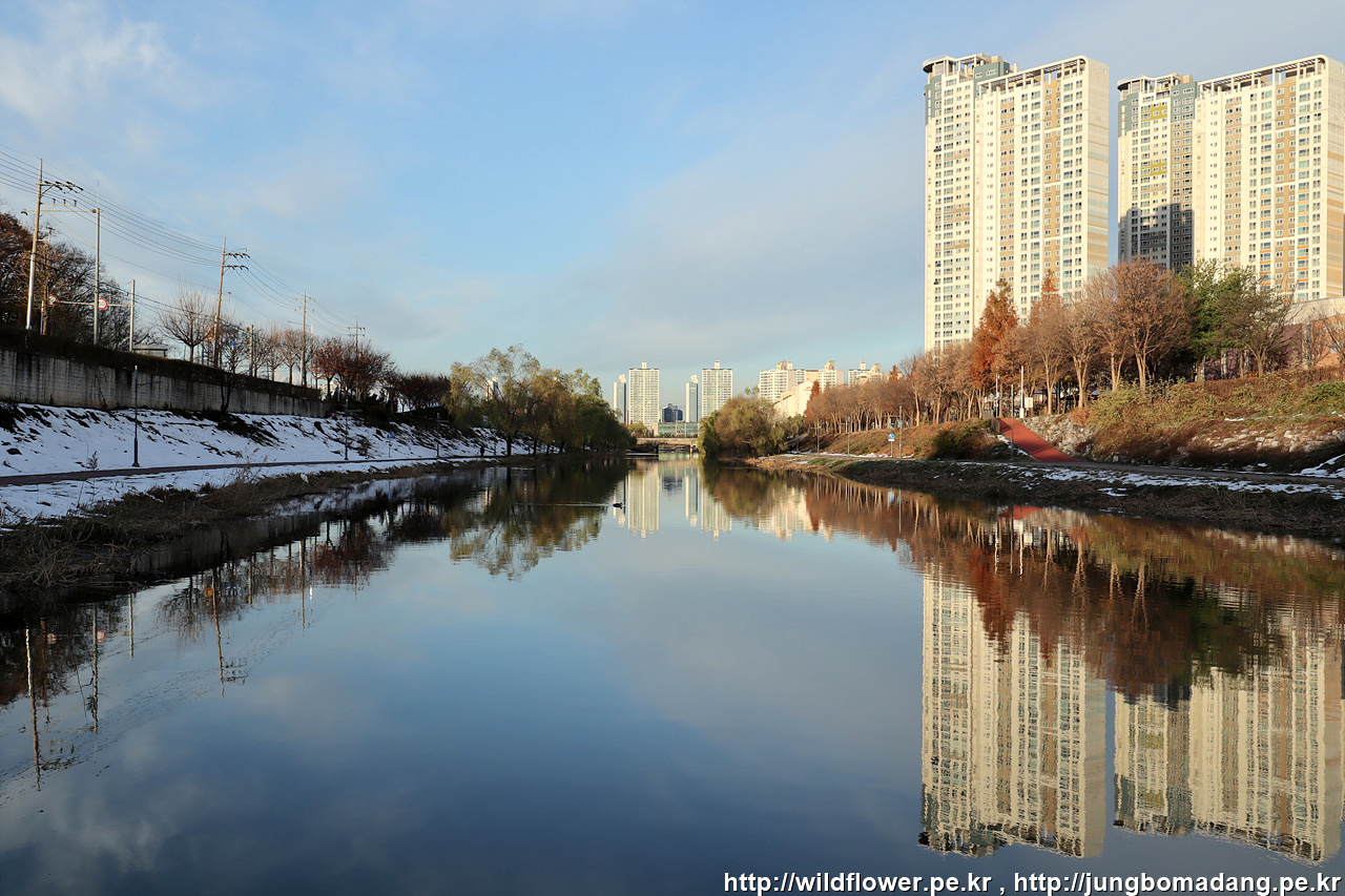 월피교에서 안산천 따라 안산호수공원까지 이동하는 길. 중간 중간 결빙 구간이 있어 조심 조심...