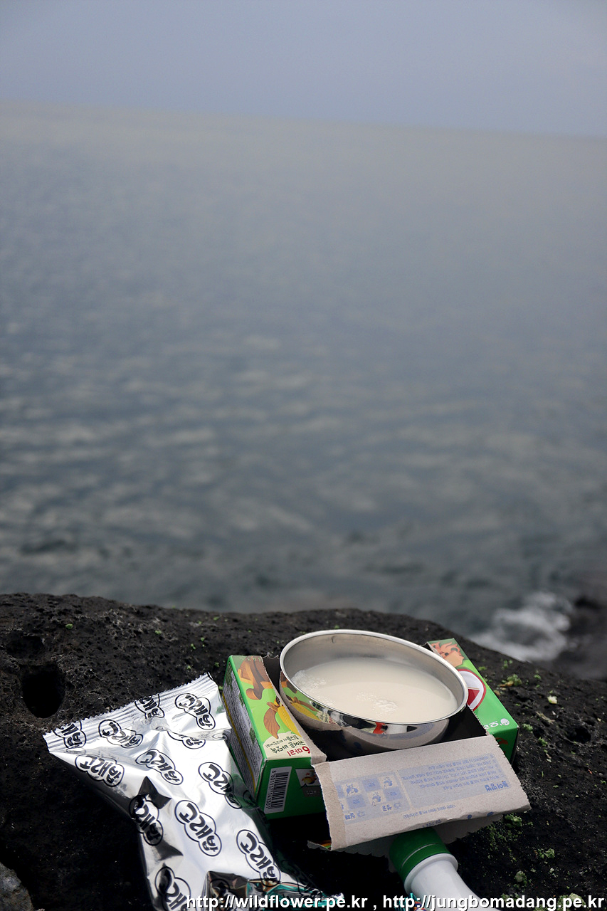 201번 버스를 환승하는 중간 시간에 터미널 주변 GS 편의점에서 제주막걸리 2병을 구매한 것과, 집에서 챙겨온 이것 저것으로 충전 시간을 가져 봅니다.