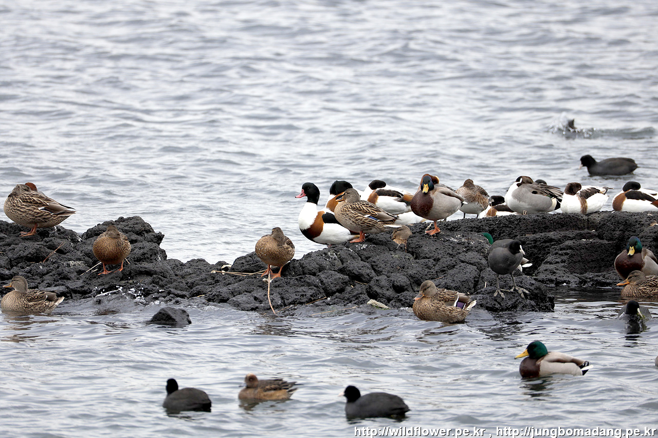 청둥오리 한쌍 - 머리 녹색이 수컷 나머지는 암컷