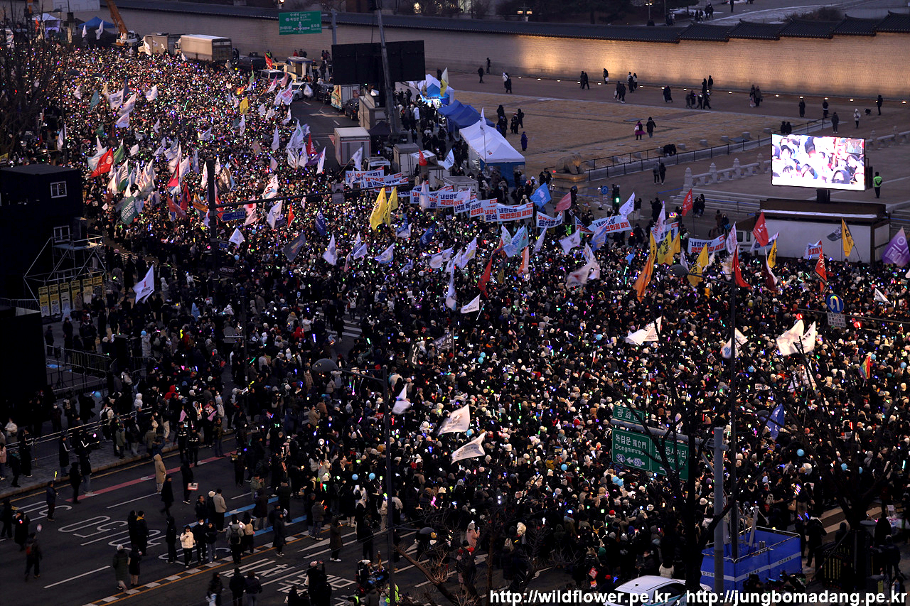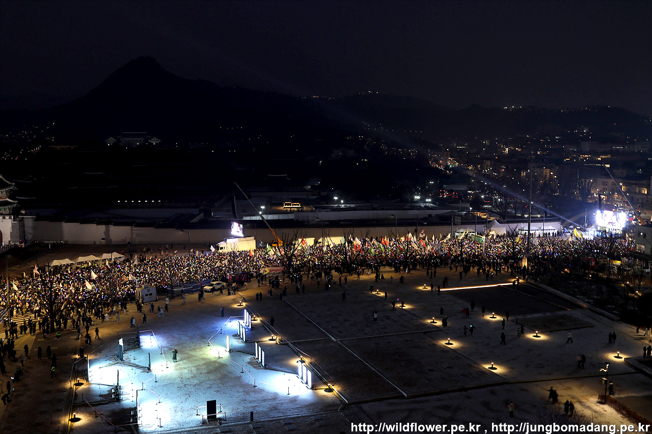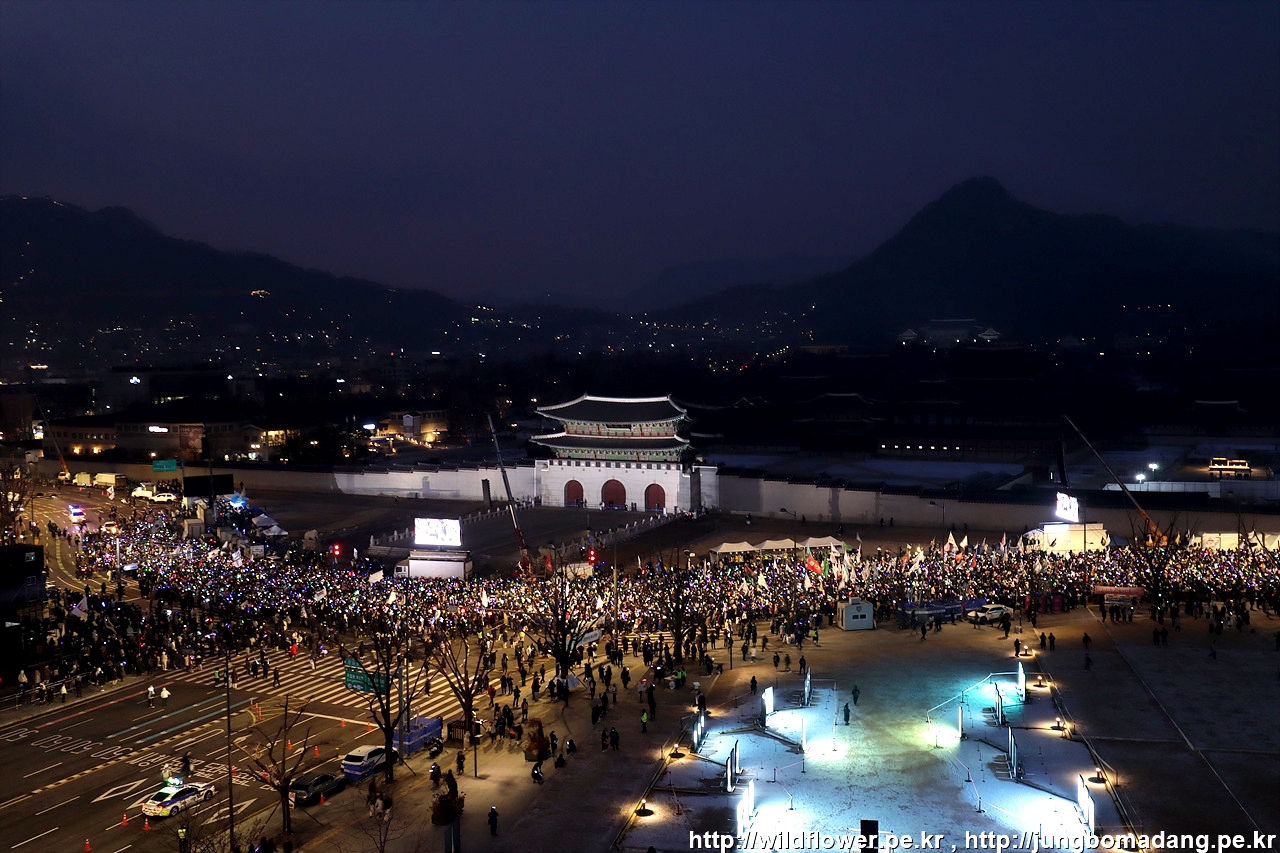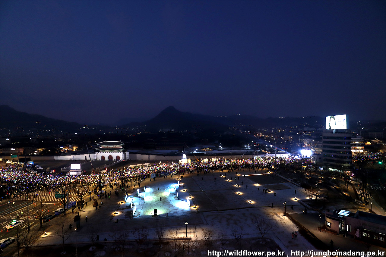 17시 51분 - 경복궁 앞 대로가 촛불(응원봉)로 빛나고 있습니다.