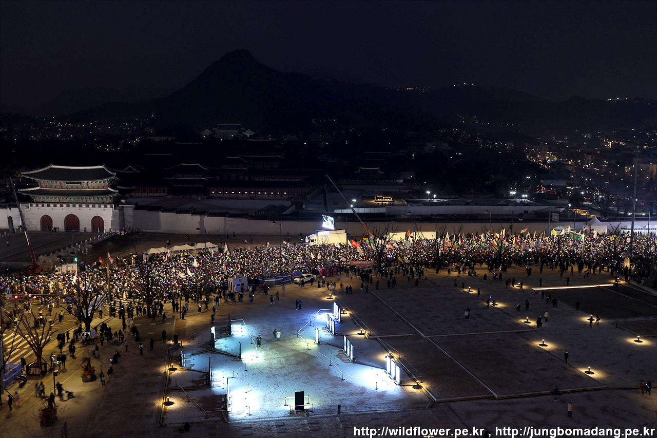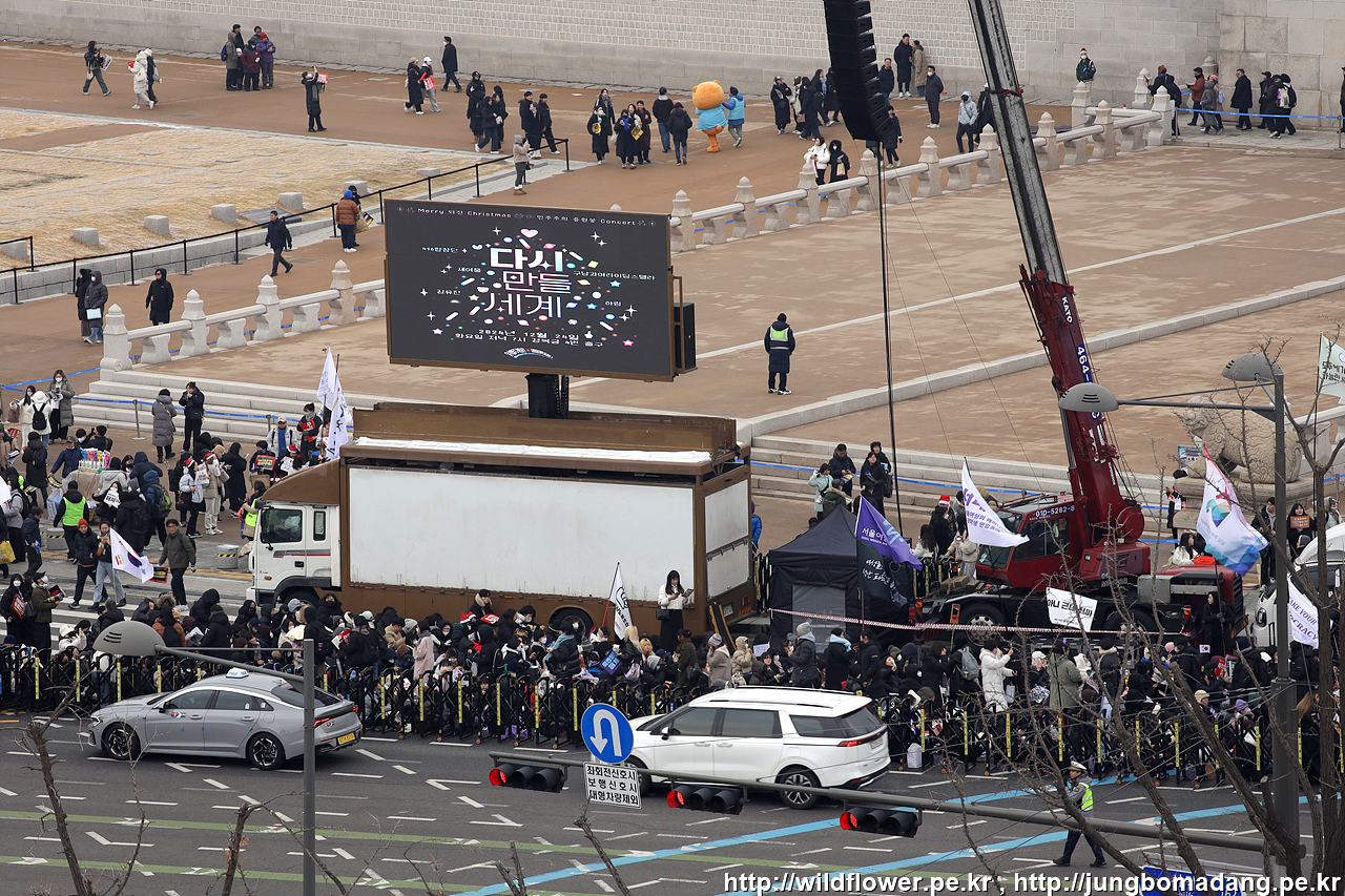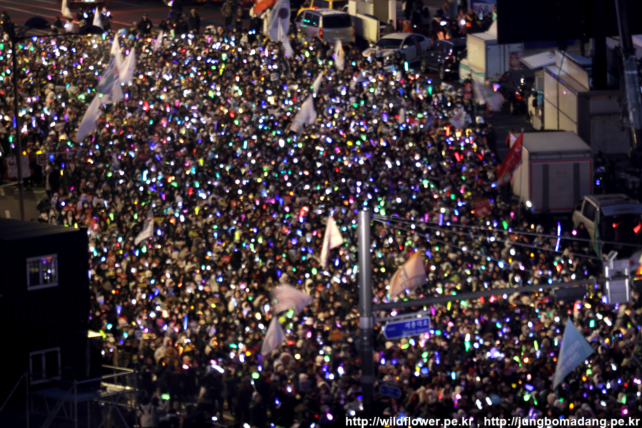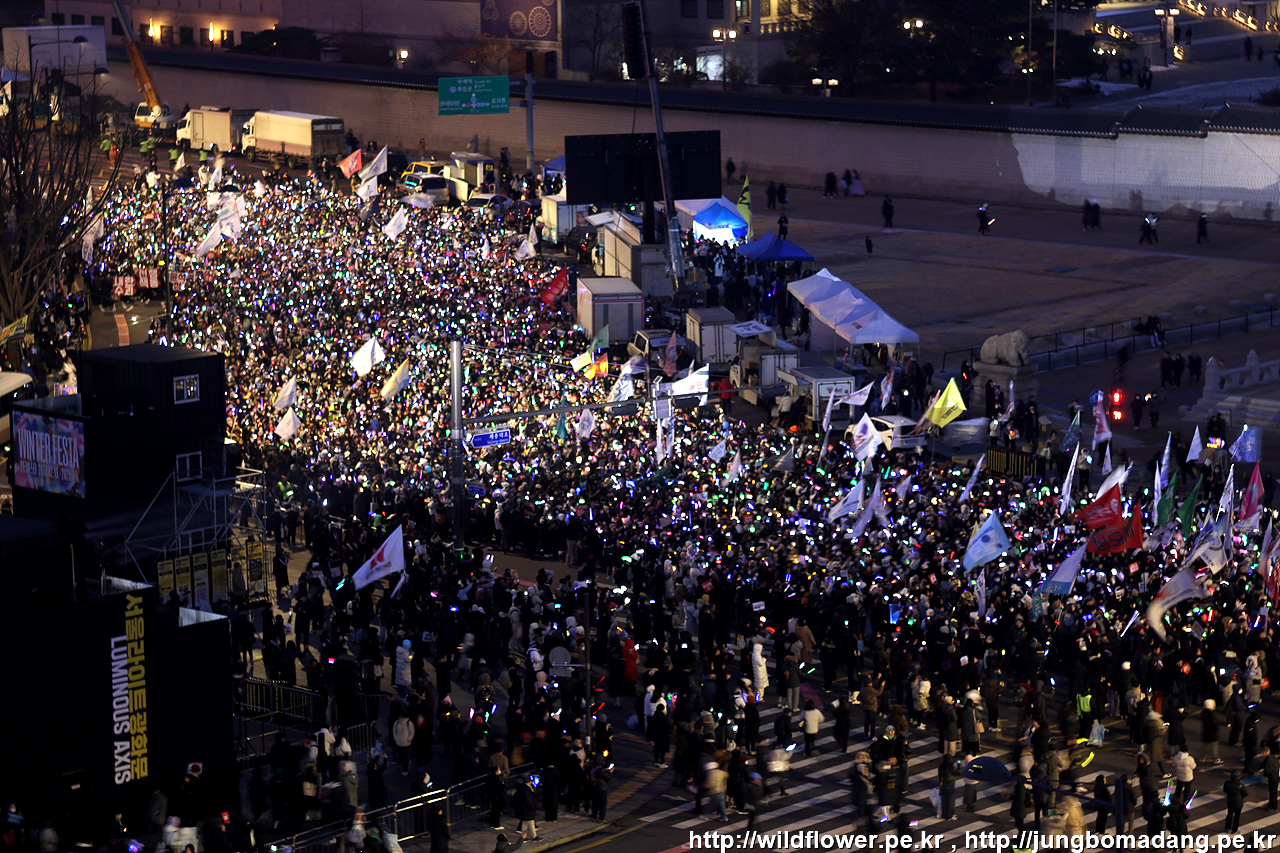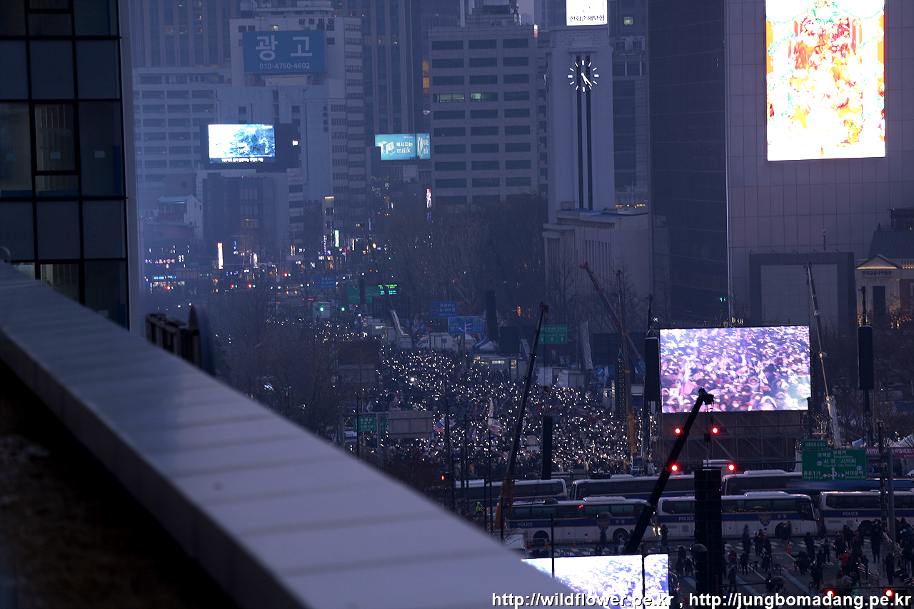 17시 51분 - 경복궁 앞 대로가 촛불(응원봉)로 빛나고 있습니다.