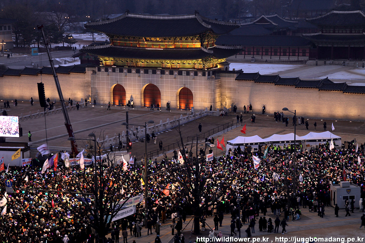 17시 51분 - 경복궁 앞 대로가 촛불(응원봉)로 빛나고 있습니다.