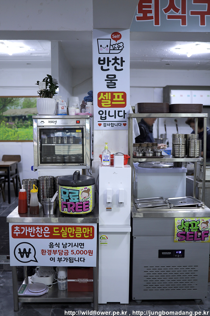 추가 반찬은 셀프(SELF) 코너에서 드실만큼 퍼가면 됩니다. 왼편에 무료 FREE라고 써있는 밥통은 뭘까요?
