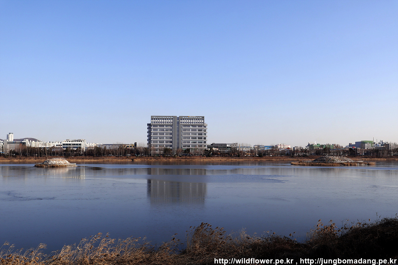또다른 유수지를 가 봤는 데, 이곳은 전체적으로 결빙 상태라 그런지 새가 안보이네요.